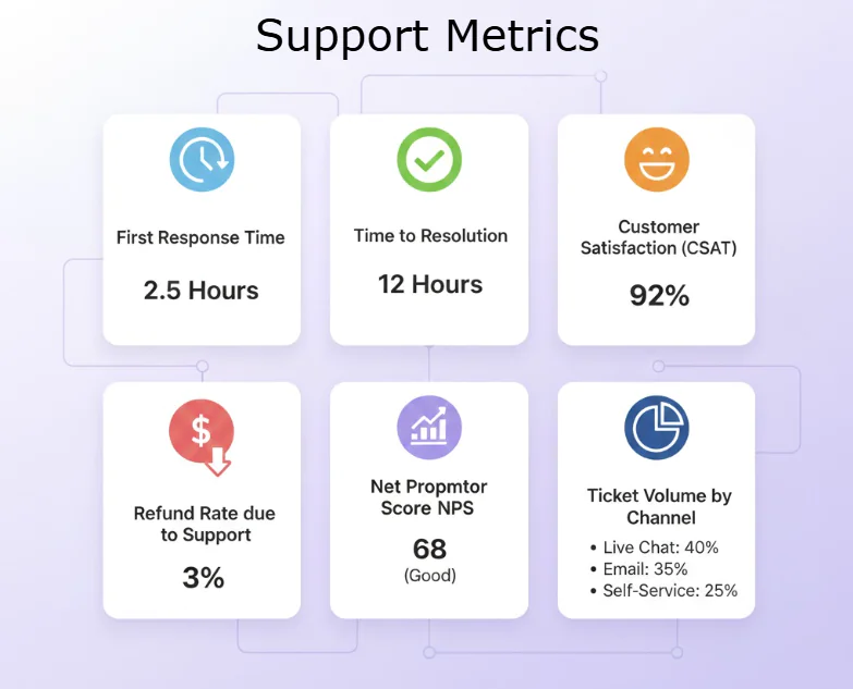 - CSAT / NPS Scores: Customer satisfaction and loyalty, tracking NPS and CSAT definitions clarifies satisfaction vs loyalty measurement