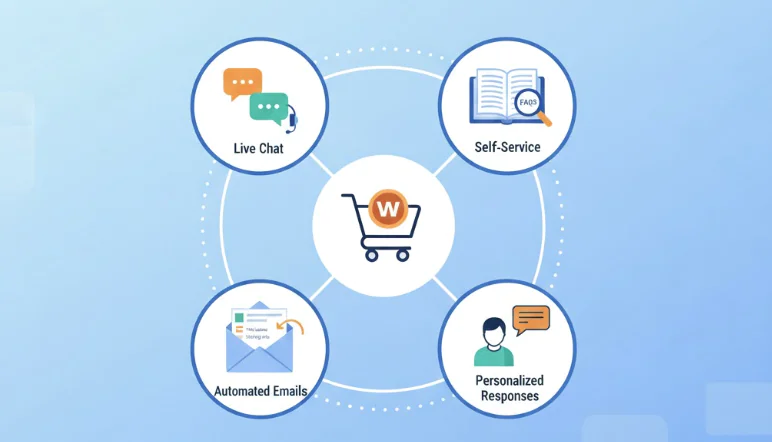 WooCommerce customer service is the support and assistance provided to shoppers throughout their buying journey. This includes: